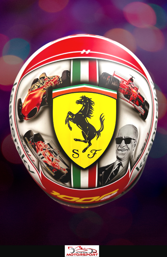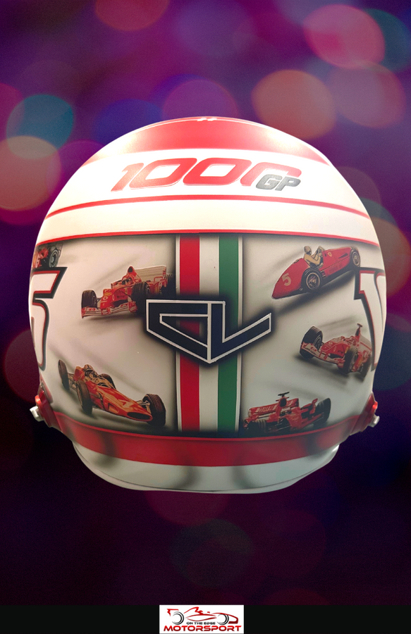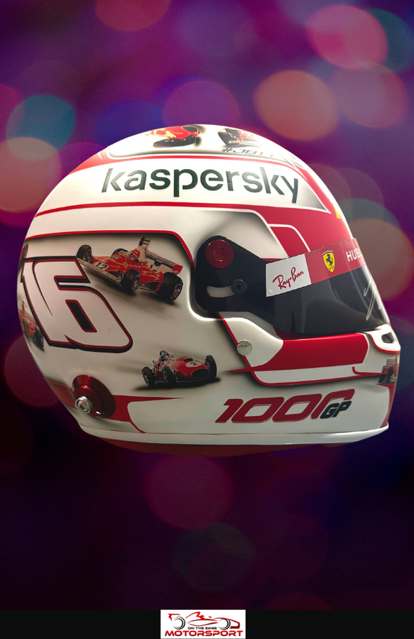 2020 Full size replica of the helmet that Charles wore at the Tuscan Grand Prix. To celebrate Ferrari's 1000th race, Charles wore a specially designed helmet, with outstanding artwork showing the history of Ferrari. The quality of this helmet is amazing, with amazing attention to detail.