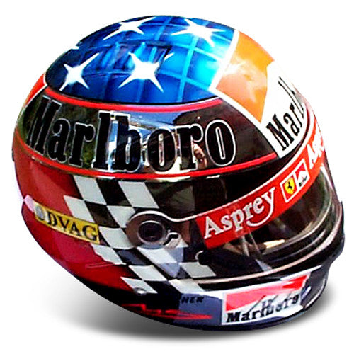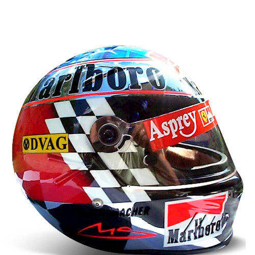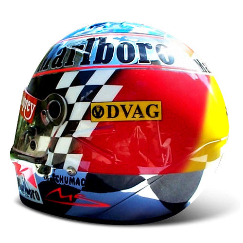 This is a replica of the helmet Michael Schumacher wore in the Japanese Grand Prix of 1998, it is the one and only time he used this design.