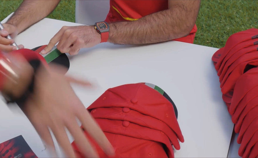 SOLD OUT  Charles Leclerc and Carlos Sainz Ferrari Signed 2022 Ferrari Red Cap Regular price $199.00