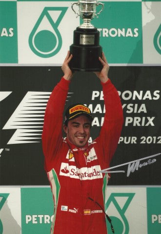 Fernando Alonso Signed Ferrari 2012 Malaysia (1st Place) Photograph