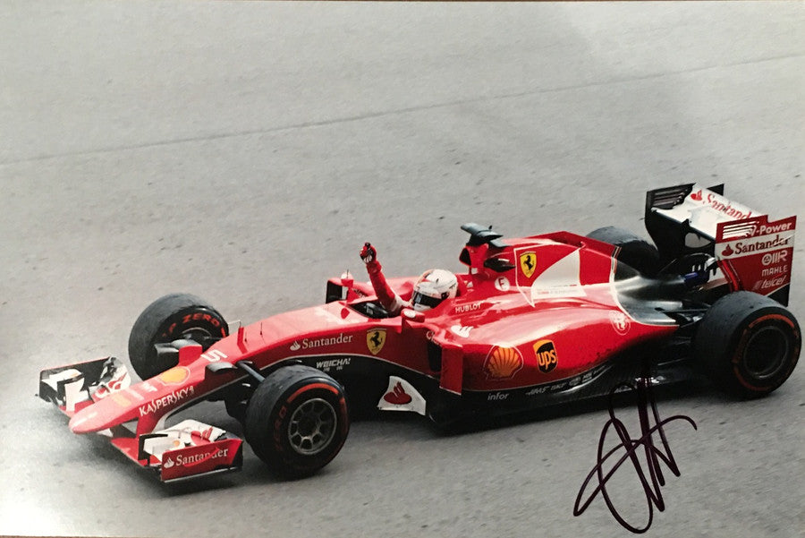 Sebastian Vettel Signed Photograph of him winning in Malaysia in 2015 - his first win for Ferrari.