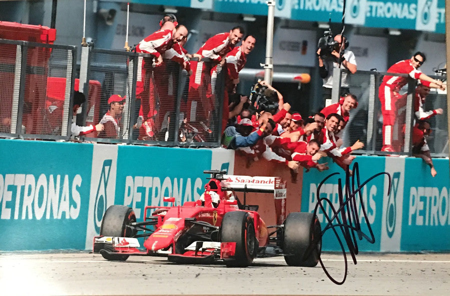 Sebastian Vettel Signed Photograph of him winning in Malaysia in 2015 - his first win for Ferrari.