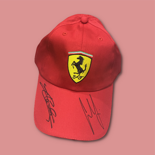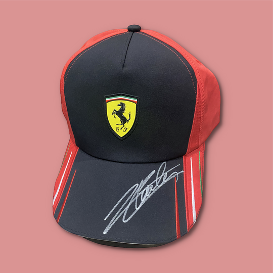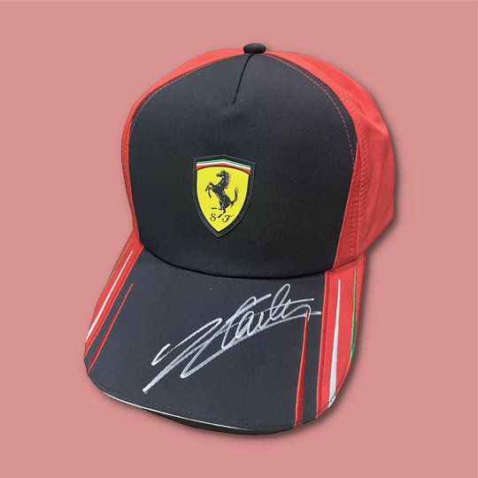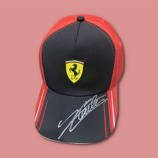 SOLD OUT            Charles Leclerc and Carlos Sainz Ferrari Signed 2022 Ferrari Red Cap Charles Leclerc and Carlos Sainz Ferrari Signed 2022 Ferrari Red Cap. This cap was signed by Charles and Carlos during the French Grand Prix weekend in 2022. Certificate of Authenticity supplied with all signed items....Regular price $199.00