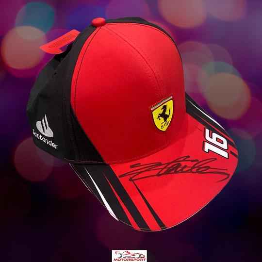 SOLD OUT    Charles Leclerc Signed 2022 CL16 Ferrari Cap Charles Leclerc Ferrari Signed 2022 Ferrari CL15 Driver Cap, as Charles himself wears. These are sold out almost everywhere and impossible to find! These were signed by Charles at the Singapore Grand Prix - secure yours...Regular price $229.00