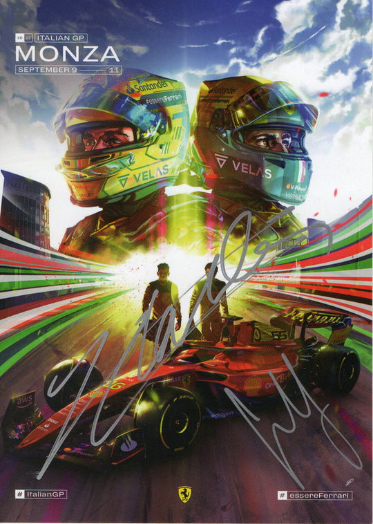 2022 Charles Leclerc and Carlos Sainz signed photograph of the Ferrari drivers at the Italian Grand Prix 2022.